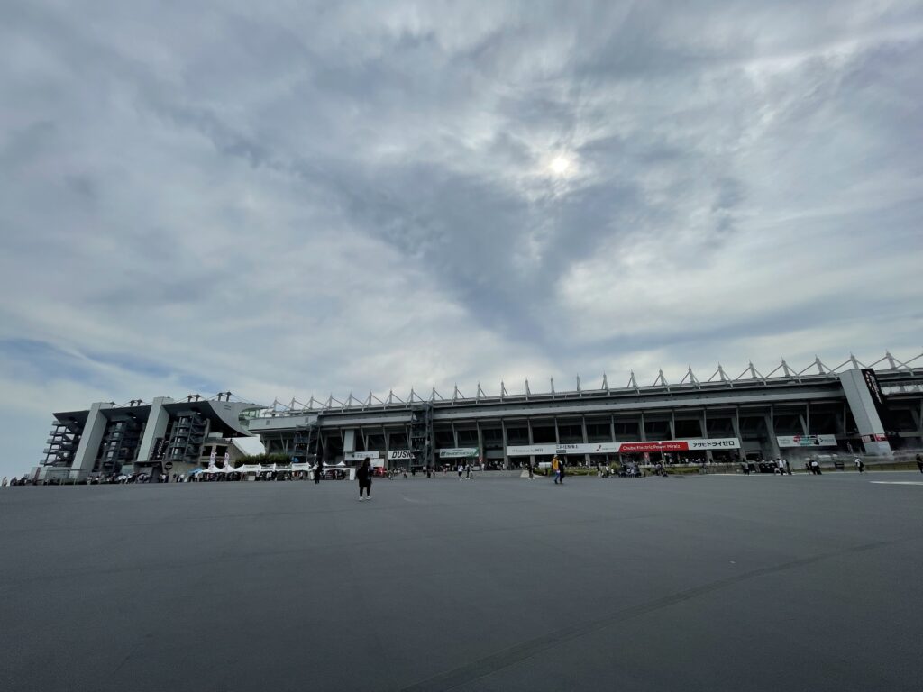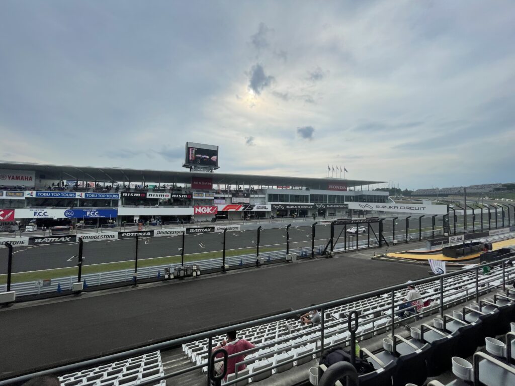 今回のレースは自由席でしたので、どこでも座れます。私はピットビルもあり、メインストレート前のエリアに向かいます。