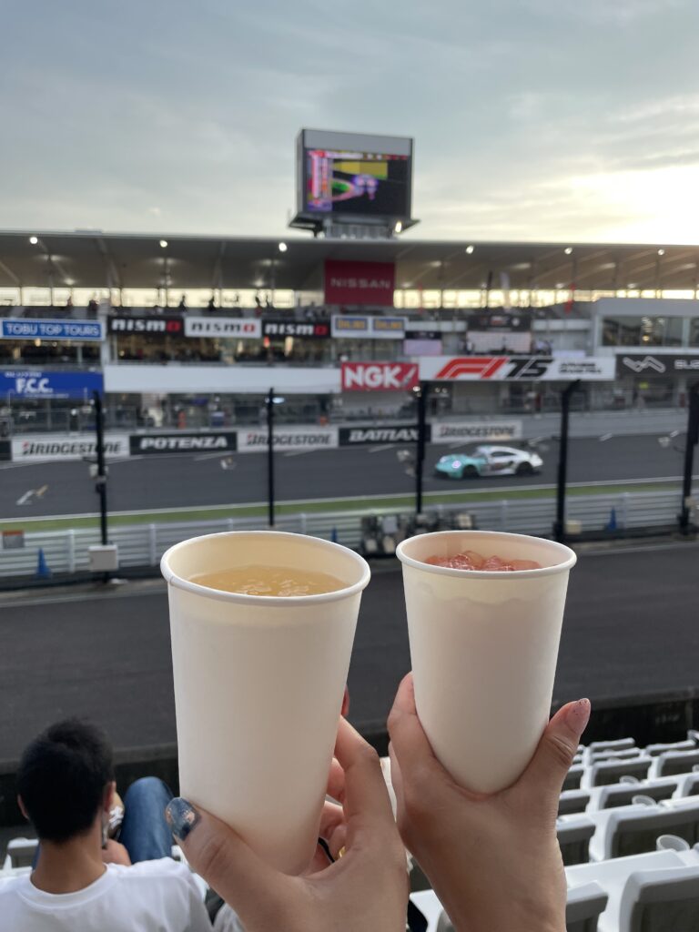 そして鈴鹿サーキットは広く、周囲に高い建物もないのでとても空が綺麗に見えます。レースに盛り上がりつつ、空を眺めながら飲むお酒は格別ですね!
